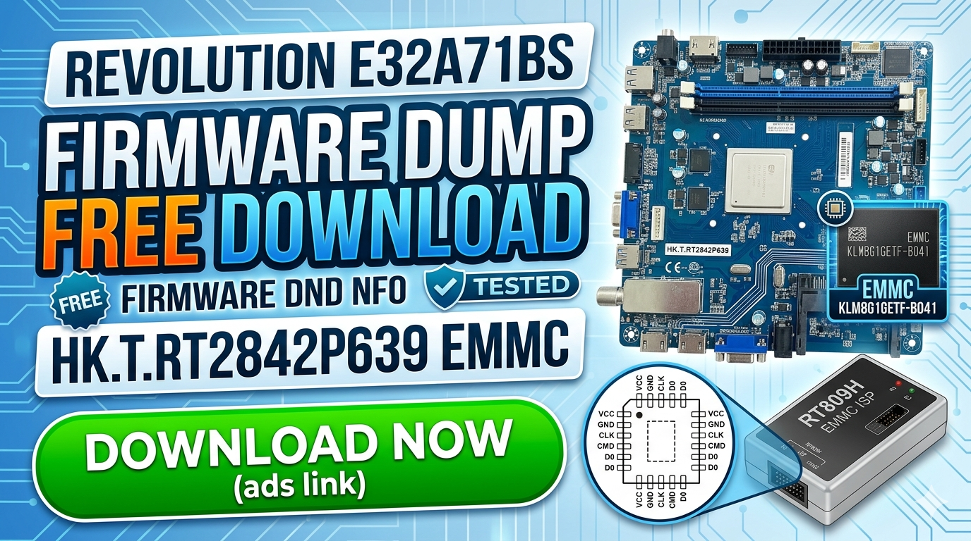 Revolution E32A71BS eMMC Firmware Download Revolution E32A71BS eMMC Firmware Dump Download The HK.T.RT2842P639 eMMC firmware is the core operating software…